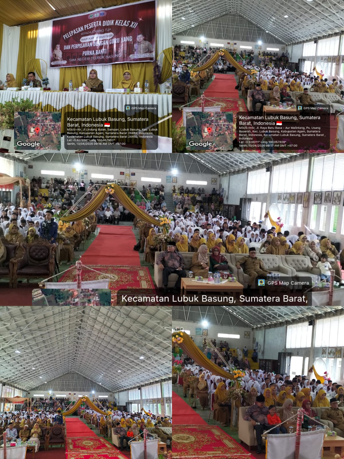 Sehubungan dengan itu, SMA Negeri 1 Lubuk Basung pada Senin 13 April 2026 menggelar acara pelepasan siswa kelas XII berjumlah 345 siswa. Acara yang digelar di aula SMAN 1 Lubuk Basung dikemas dengan konsep kesederhanaan dan acara dihadiri Kepala cabang Dinas Wilayah I (Wilia Zuwerni, S.Pd.M.Si), Pengawas Satuan Pendidikan Yenni Kurniati, S.Pd.M.D, Camat Lubuk Basung diwakili oleh wali Nagari Lubuk Basung ( Dharma Ira Putra), Orang tua siswa, Pengurus Komite, Guru yang purna bakti, GTK SMAN 1 Lubas.