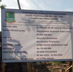Proyek dengan nilai kontrak Rp.95.345.000, dari APBD Karawang tahun 2025.Yang di kerjakan oleh CV.Citra Agung.