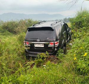 Mobil Fortuner tergelincir melaju ke jalur kanan lalu kembali ke jalur kiri dimana saat itu situasi jalan kondisi cuaca gerimis dan jalan licin sehingga bertabrakan dengan Sepeda motor Honda Beat yang datang berlawanan arah