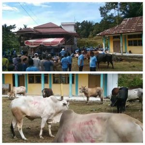 Kedua tahapan pemotong hewan korban, dilakukan di pelataran Villa komplek SMK N I Aur Malintang.