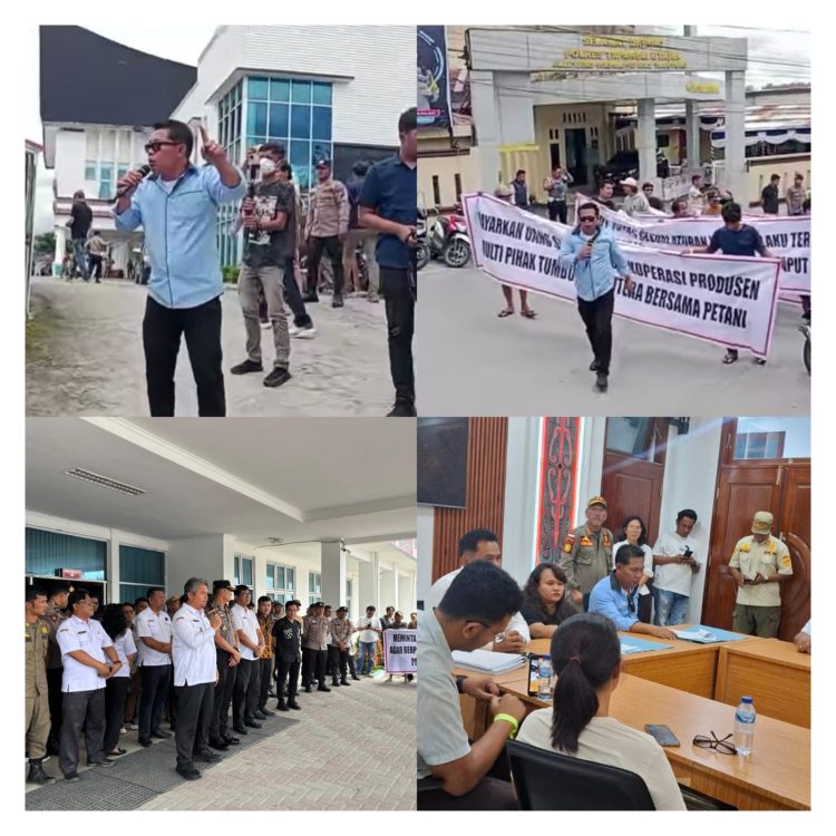 TARUTUNG–Zonadinamikanews.Gelombang keresahan ratusan pengusaha lokal memuncak di halaman Kantor Bupati Tapanuli Utara pada Rabu (15/04/2026). Aliansi Supplier Koperasi Produsen Multi Pihak Tumbuh Sejahtera Bersama Petani (PKMPTSBP) menggelar aksi unjuk rasa besar-besaran guna menuntut transparansi atas macetnya pembayaran dana program Makan Bergizi Gratis (MBG) yang mandek sejak Februari lalu.