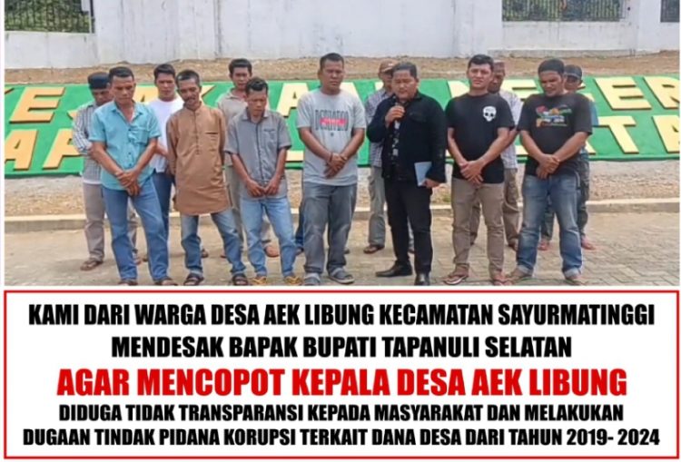 TAPSEL-Zonadinamikanews.com. Warga Desa Aek Libung, Kecamatan Sayur Matinggi, Kabupaten Tapanuli Selatan, Provinsi Sumatera Utara, yang mengatasnamakan MasPETA (Masyarakat Petani) Aek Libung mendesak penegak hukum untuk melakukan pemeriksaan Suparman sebagai kepala desa Aek Libung, Pasca di laporkan ke Kejaksaan Negeri Tapanuli Selatan beberapa waktu lalu.