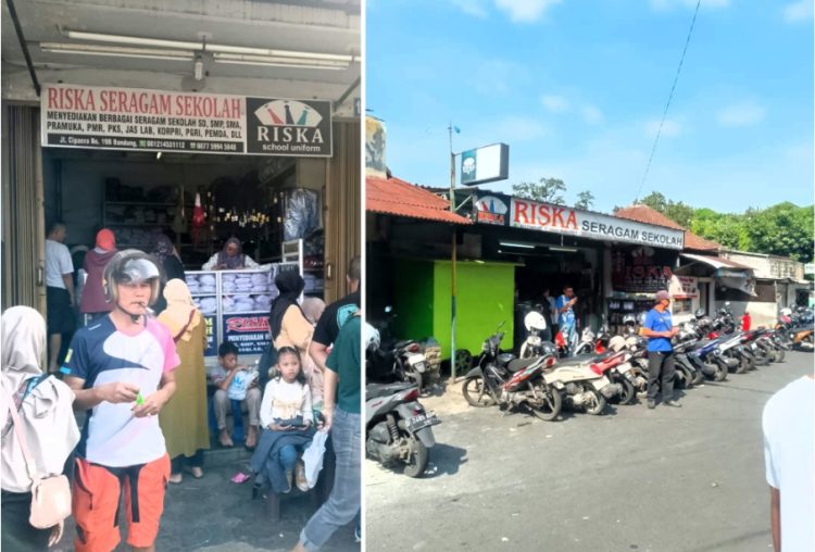 BANDUNG-Zonadinamikanews.com. Sejumlah orang tua murid dengan terpaksa harus mengantri dalam pembelian kelengkapan anaknya, seperti dasi, topi, dan pakaian lainya. Mereka di arahkan pihak sekolah belanja di sebuah toko seragam sekolah yang bernama Riska seragam sekolah, yang beralamat di jalanCipare No.19 Bandung.