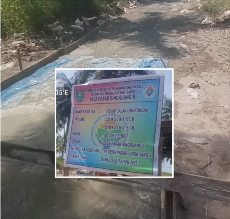 Dana Desa Singkuang II, Kecamatan Muara Batang Gadis Kabupaten Mandailing Natal, Provinsi Sumatera Utara, dalam rehabilitasi jalan lingkungan tersebut sebesar Rp.293.219.560 dari dana desa tahun 2025.