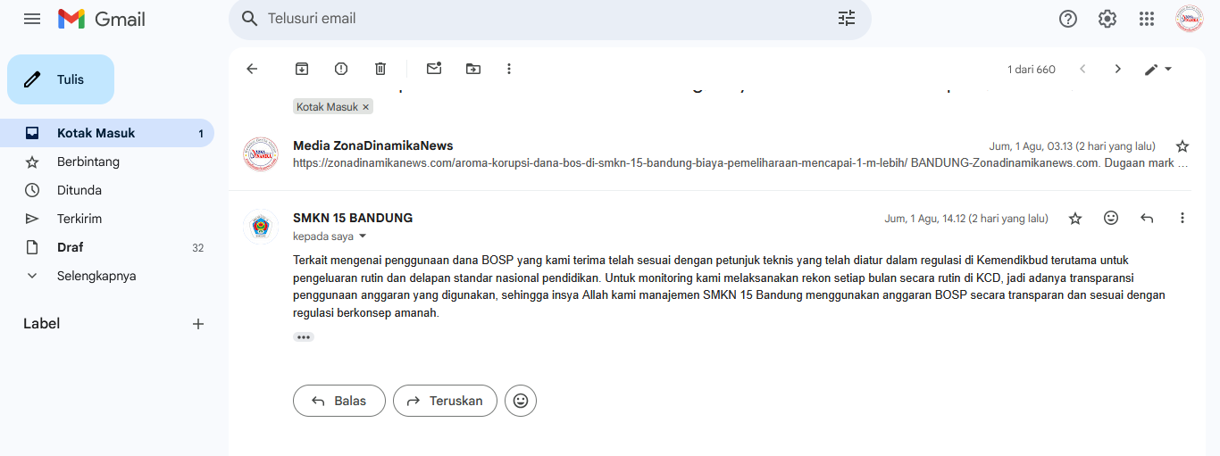 BANDUNG-Zonadinamikanews.com. Menanggapi akan pemberitaan media ini yang berjudul “Aroma Korupsi Dana BOS di SMKN 15 Bandung, Biaya Pemeliharaan Mencapai 1,4 M lebih” dan dugaan korupsi dana Pendidikan tahun ajaran 2024 di SMKN 15 Kota Bandung, Jawa Barat, agaknya semakin terbuka lebar, indikasi korupsi tersebut berpotensi terjadinya kerugian negara hingga miliaran rupiah.